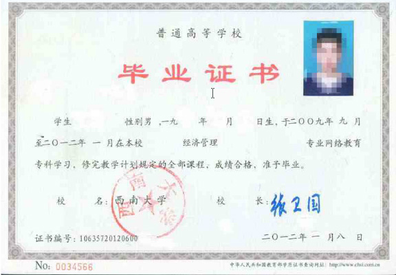 五、毕业证书