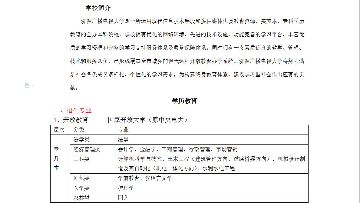 济源电大2017年春季招生简章